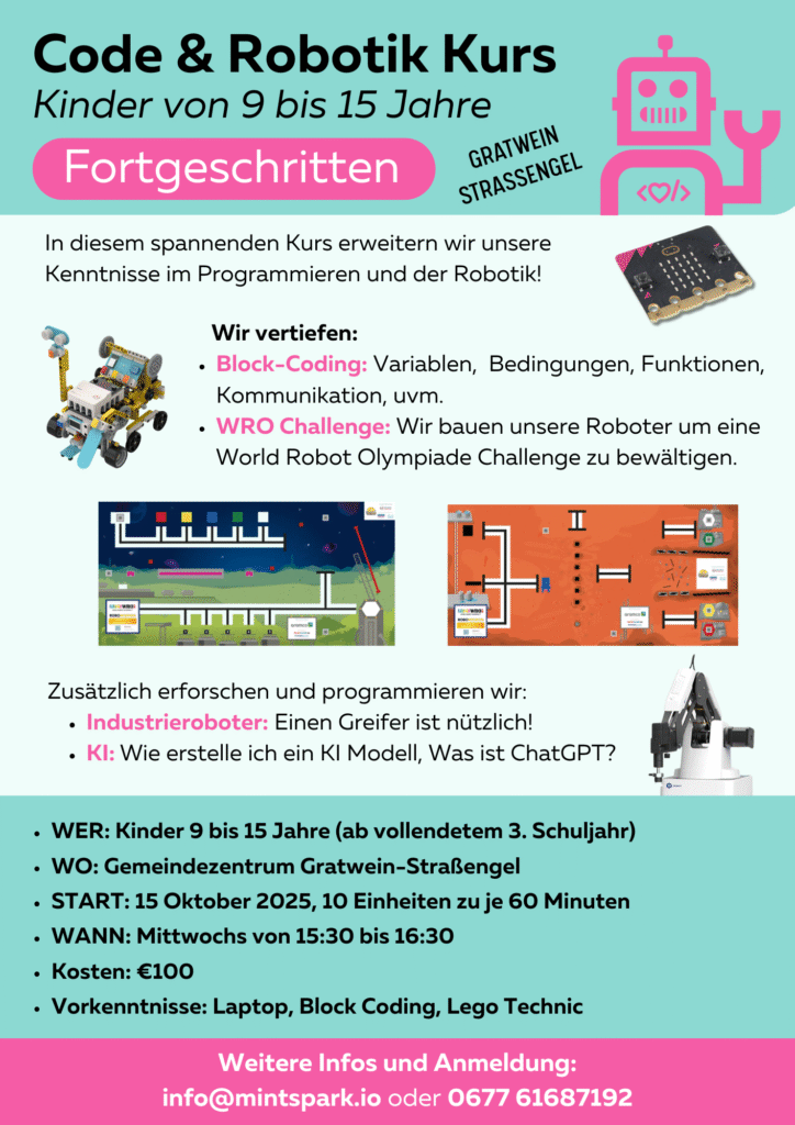 💻️Programmier- und Robotik Kurse für Kinder im Gemeindezentrum Gratwein-Straßengel: Begin 15. Oktober 2025 🤖